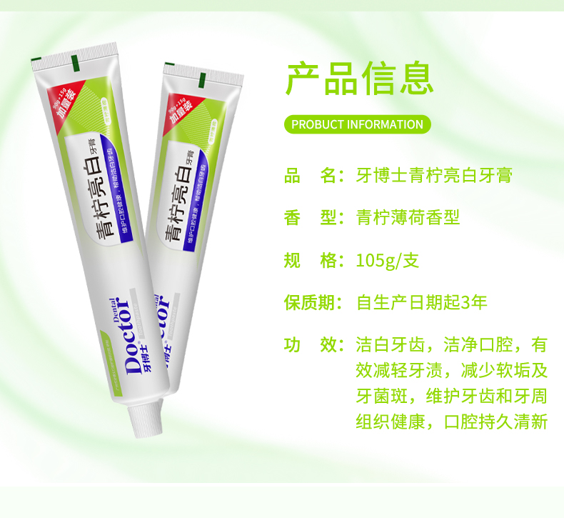 牙博士青檸亮白牙膏 105g*2