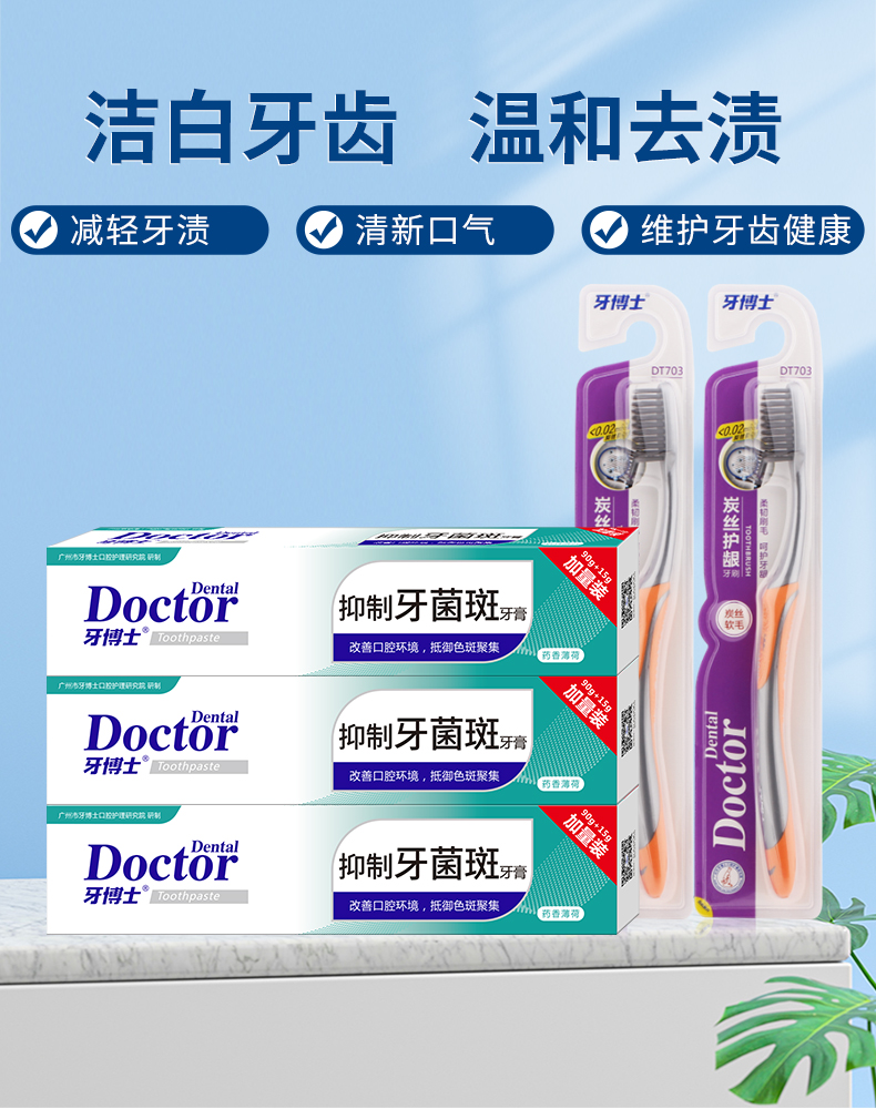 牙博士抑制牙菌斑牙膏超值套裝105g*3+牙刷*2