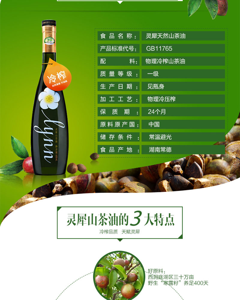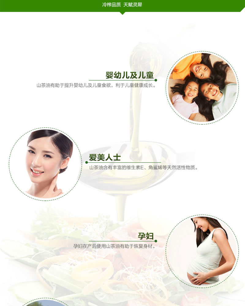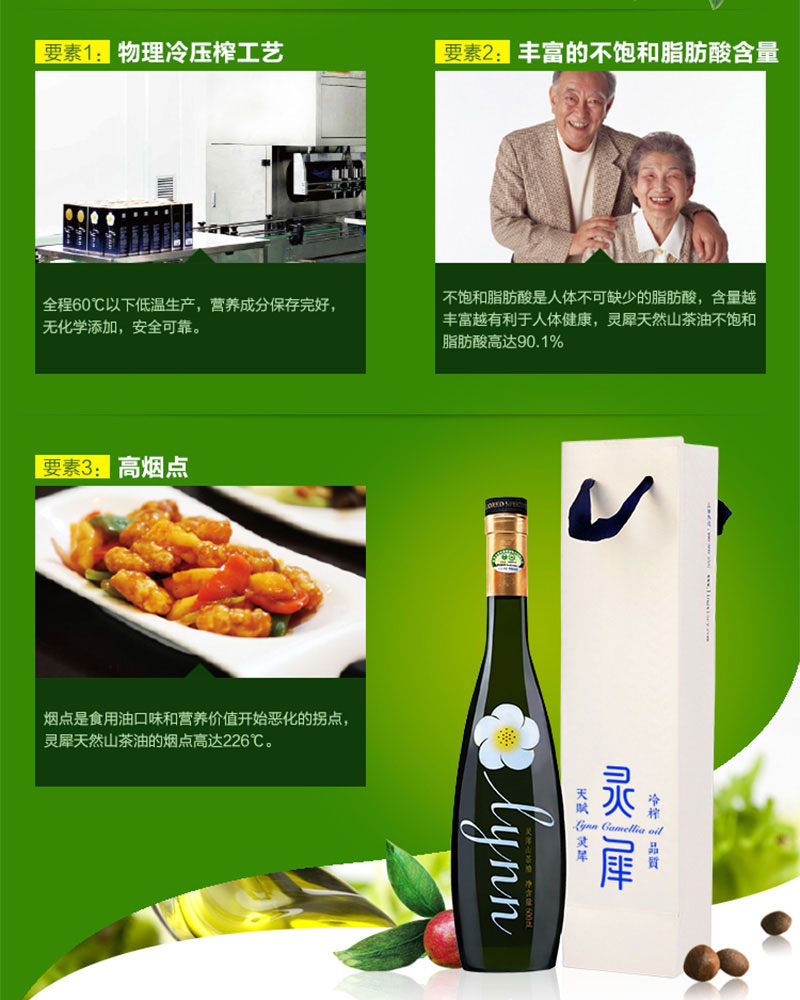 2.食用價值:長期食用山茶油可以預防三高,清理血管敗壞細胞,在醫學界山茶油被稱為”血管清道夫“。還有“月子油”、“腦黃金”、   “長壽油”等之稱。