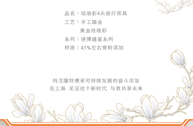 瑪戈隆特 4頭進博旅行茶具進博玉蘭-黃金琺瑯彩