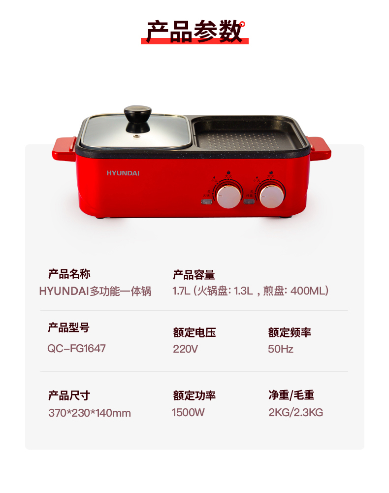 產品顏色: 紅色,產品容量:1.7L(火鍋盤:1.3L ,煎盤:400ml)