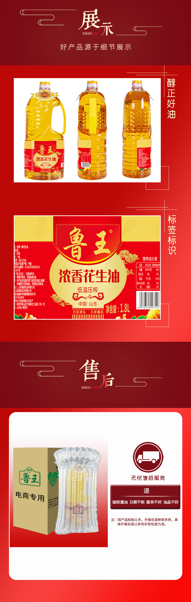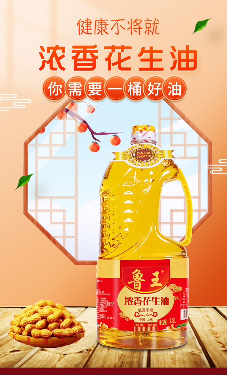 魯王低溫壓榨濃香花生油1.8L*2
